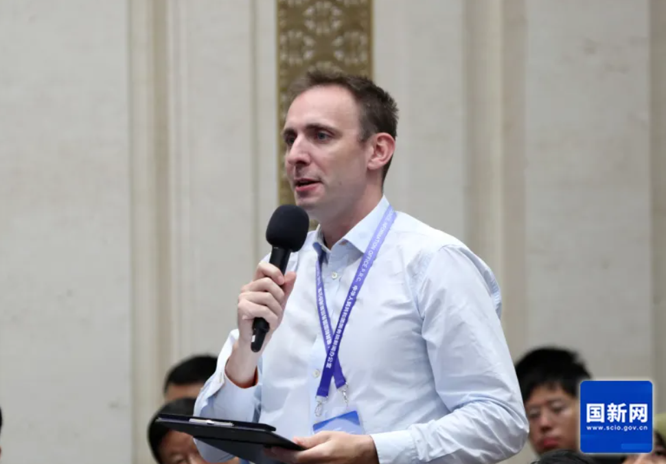 美國國際市場新聞社記者提問(趙一帆 攝)